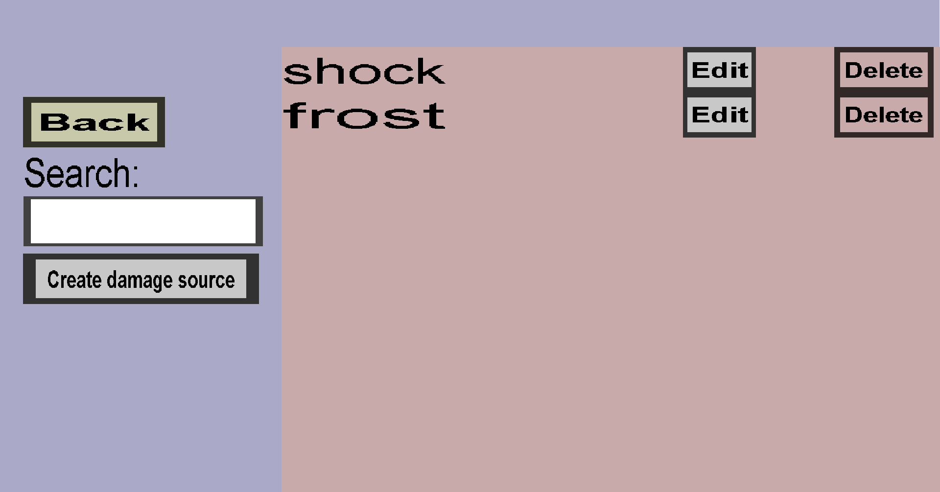The custom damage source overview shows a list of all custom damage sources. You can create custom armor that is strong or weak against specific custom damage sources, and you can configure custom items to deal such custom damage. If you have shock and frost custom damage sources, it should look like this: