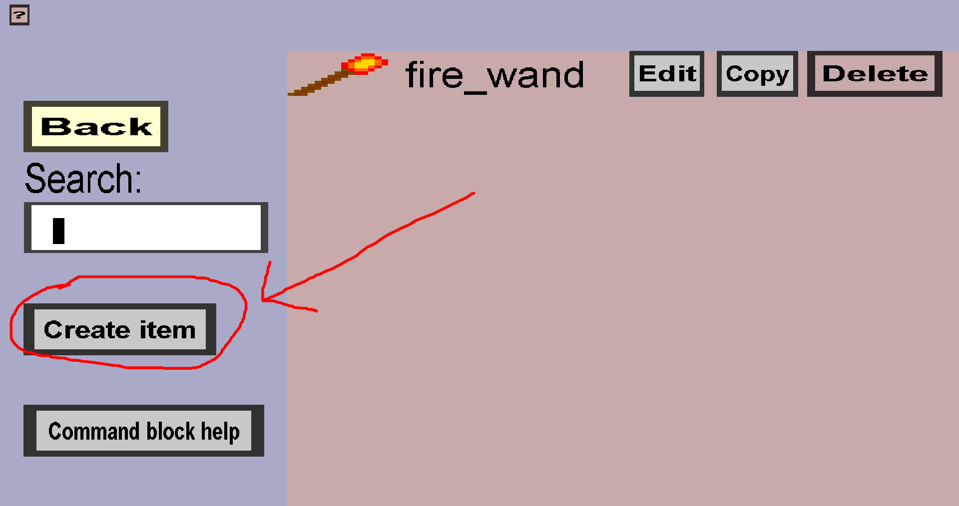 You must also give the wand a Projectile. You should choose the projectile you just created. You can also configure the Max charges, Recharge time (this will appear when you increase Max charges), Amount per shot, and Cooldown. Click the question mark on the top-left for more information about them. I will just go with the default values. To finish the wand, click Create. Once you have done that, you are ready to test your first projectile and wand: Export your item set, replace your .cis file and resourcepack, and start your server!