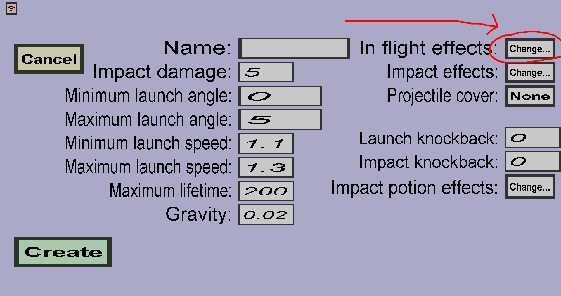 In-flight effects are 'effects' that will be 'played' periodically at the location of the custom projectile. To get started, follow these steps: