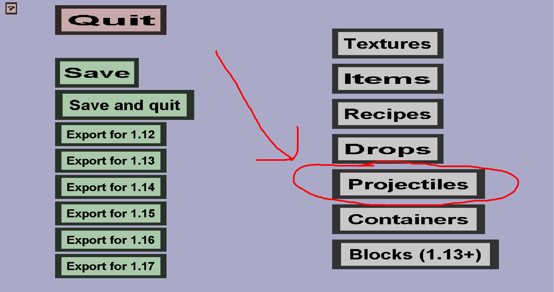 These are all the kinds of projectile effects you can add. The following projectile effects can be used to make the projectile visible: