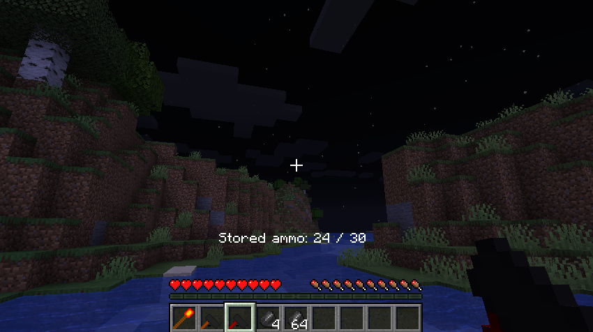 The indirect gun should have 30 ammo initially and reduce its ammo when you shoot with it. It should also shoot more bullets per second than the direct gun because it has a cooldown of 4 ticks rather than 10. This gun won't require any flint until it runs out of ammo. When it does run out of ammo and you try to shoot, you should hear its reload sounds and see 30 flint being consumed from your inventory (at least, if you have at least 30 flint).