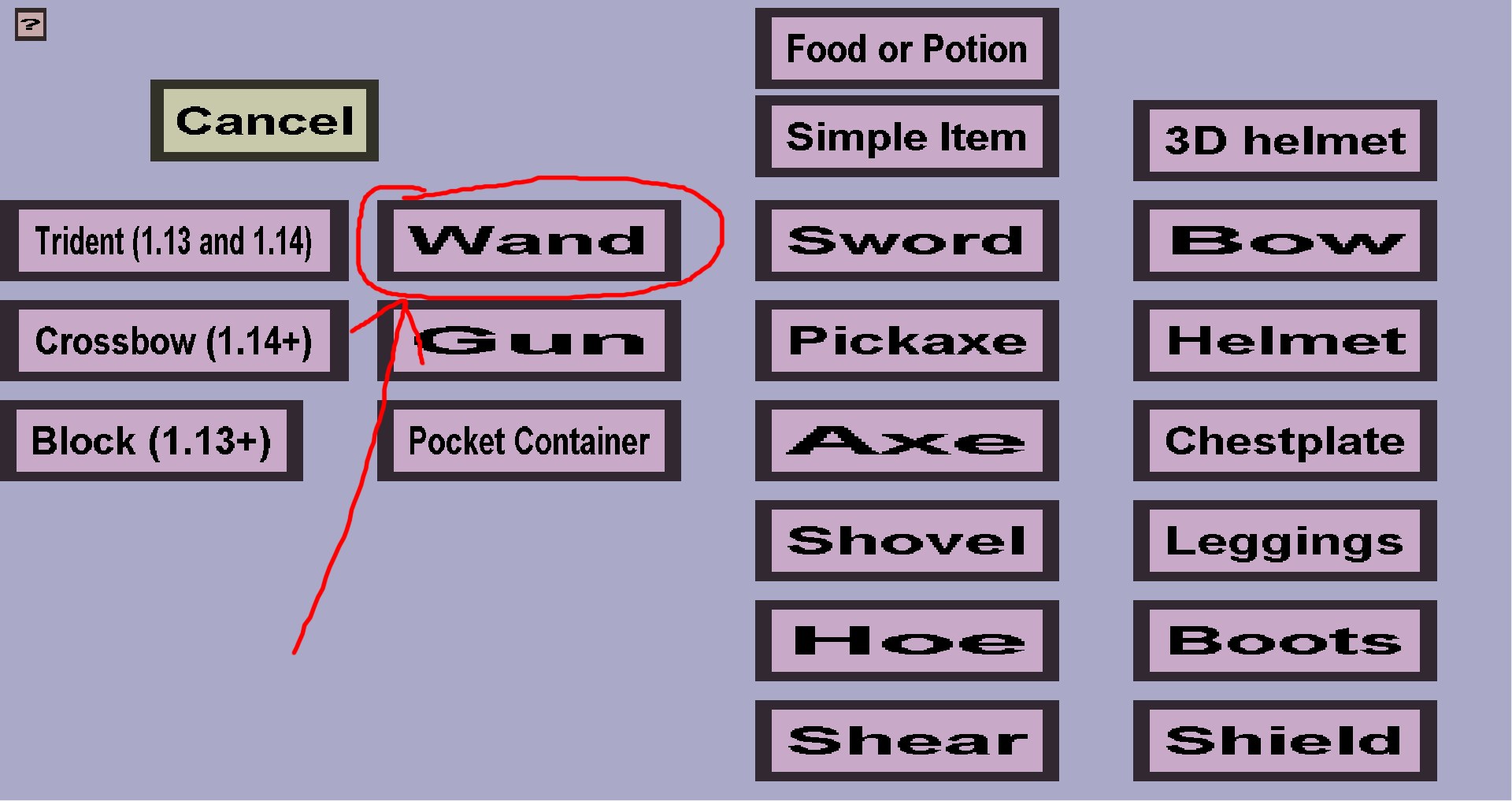 Like most other items, you need to give the wand a Name and Texture. I will use the following texture: